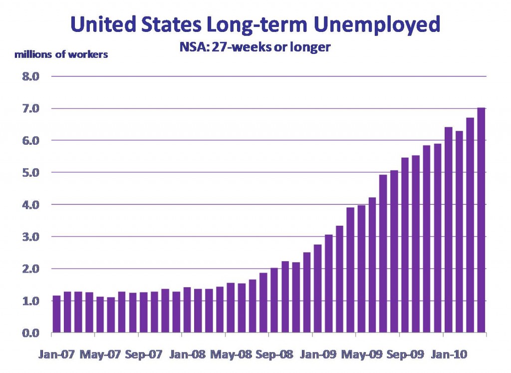 The number of persons who were unemployed for 27 weeks or longer, the long-term unemployed, increased from 6.7 million people in March to 7 million people in April. The average duration of unemployment jumped from 31.2 weeks in March to 33 weeks in April.