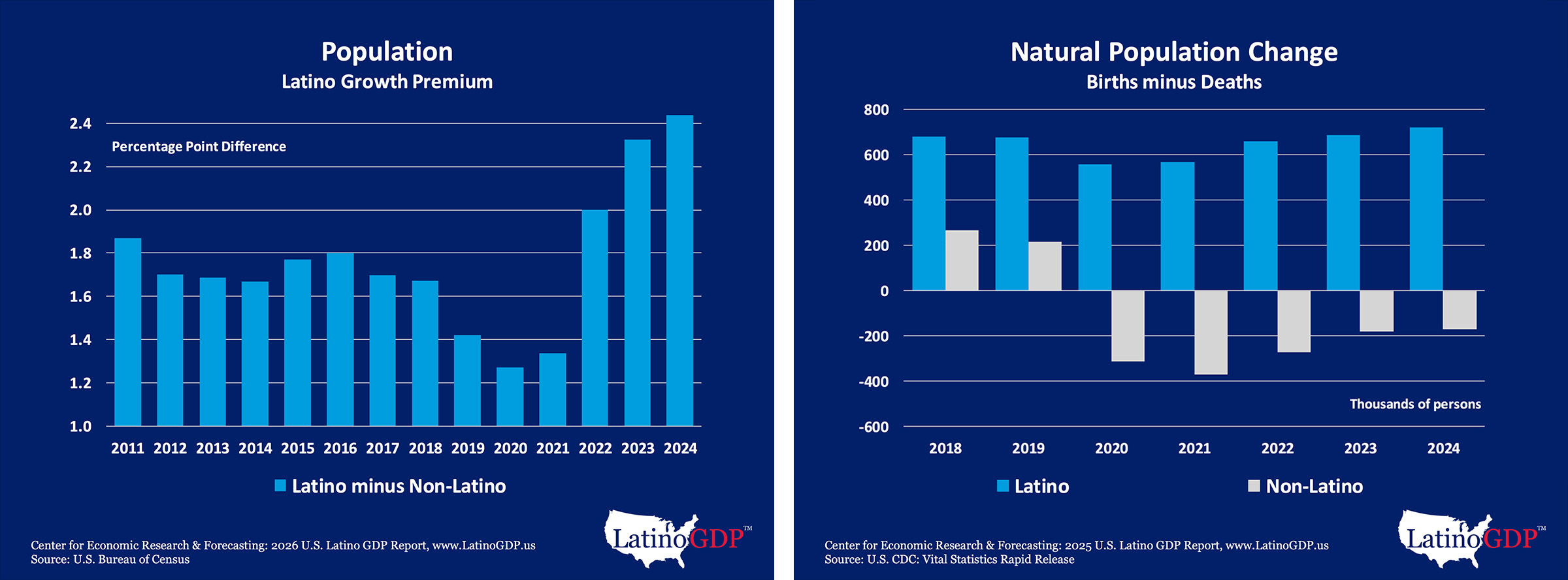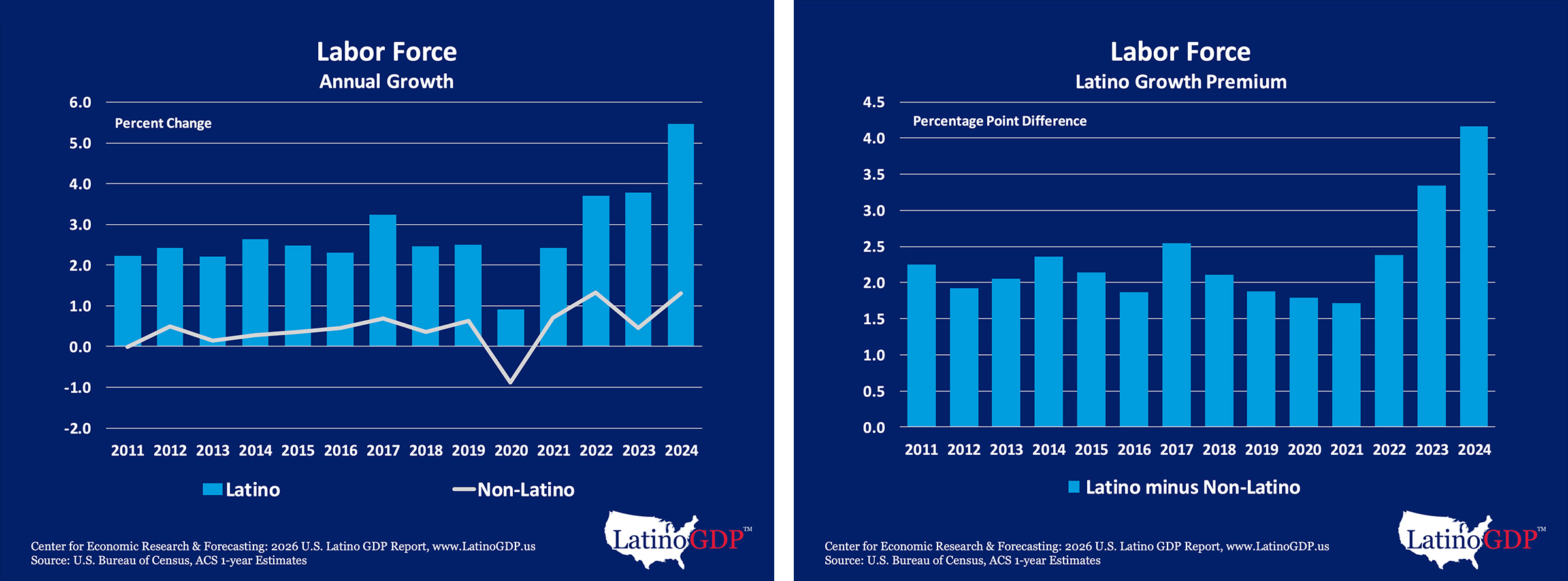 Against that already impressive backdrop, we note newly released and record-setting population and labor force data. For the first time in history, one of every five people living in the United States is Latino. In 2024, the Latino labor force grew 5.5 percent, the single strongest growth on record and 4.2 percentage points stronger than Non-Latino. From 2010 to 2024, the Latino component of the U.S. labor force grew 7.2 times faster than the Non-Latino labor force. And the Latino labor force participation rate sits at an all-time high of 69 percent. The Latino labor force participation premium, that is, the difference between Latino and Non-Latino participation rates, hit a record in 2024 of 6.2 percentage points.